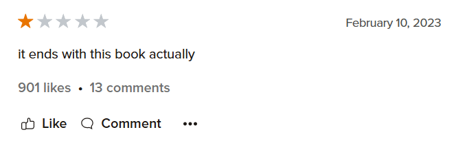 Disclaimer: All these comments are from people who didn’t like the books, there are people out there who like these and maybe you will to. Just remember to check the trigger warnings if there are any.